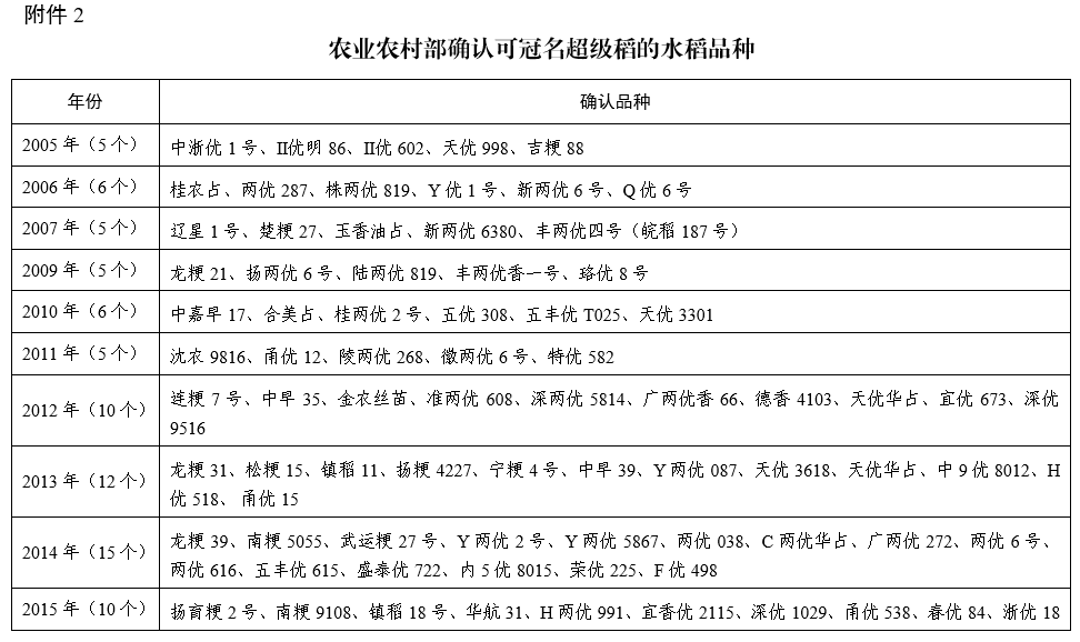 同时,因推广面积未达要求,莲稻1号、长白25N两优2号等3个品种不再冠名超级稻。截至目前,经农业农村部确认、可冠名超级稻的水稻品种共135个。