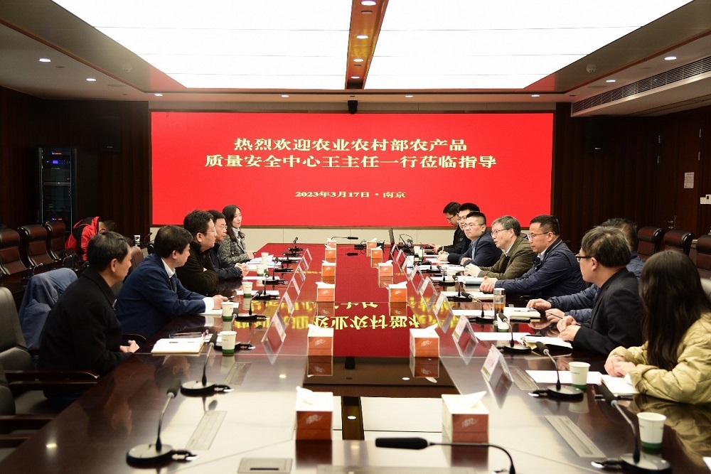 2023年3月17日,农业农村部农产品质量安全中心副主任王子强一行到PA视讯开展全面质量管理、全国名特优新农产品调研工作。江苏省农科院副院长刘贤金,PA视讯总裁朱亚东等相关人员陪同调研。