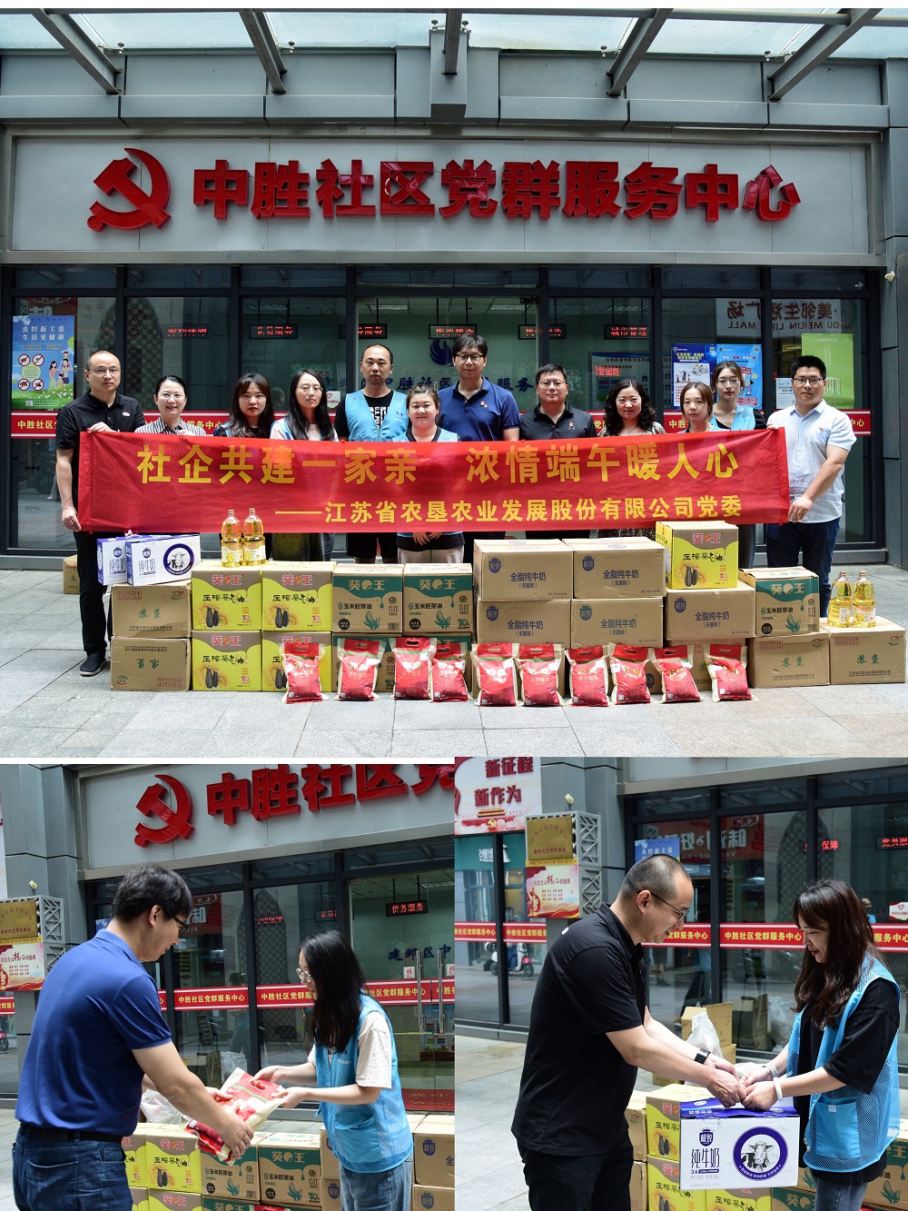 在端午节来临前夕,为弘扬中华传统美德,加大与所辖社区共驻共建力度,营造文明和谐的节日氛围,6月21日,PA视讯到建邺区沙洲街道中胜社区开展“社企共建一家亲 浓情端午暖人心”慰问活动,给社区一线网格员们送去慰问品和节日祝福。