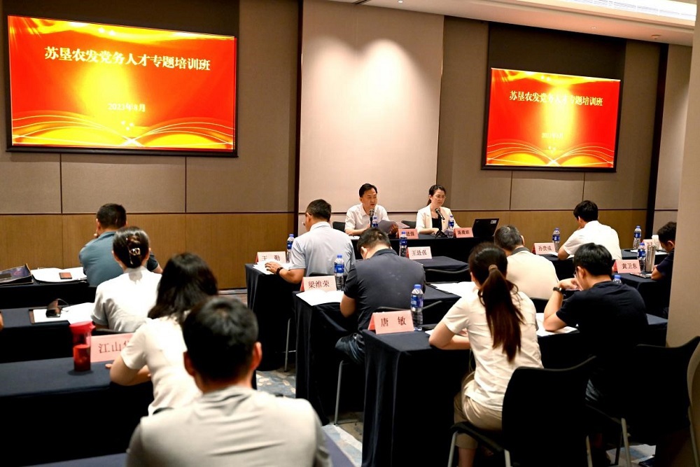 •        为深入学习贯彻习近平新时代中国特色社会主义思想和党的二十大精神,提升公司党务工作者政治能力和业务水平,提高公司党建工作质量,加快推进党建工作与生产经营深度融合,8月2日至4日,PA视讯在徐州举办为期3天的党务人才专题培训班。公司党委副书记、工会主席出席开班式并讲话,公司总部、子公司、苏垦农科院党务工作者35人参加培训。