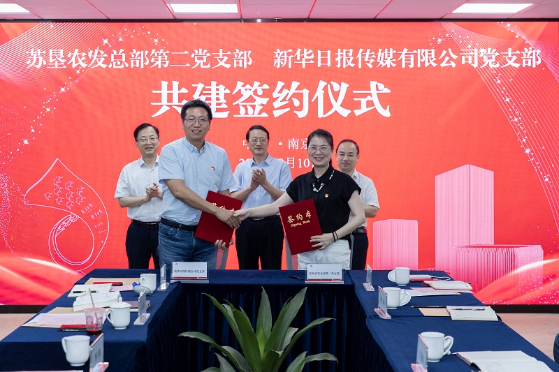 在新华日报传媒有限公司党支部书记、新华日报社(集团)编委、新华日报传媒有限公司总经理樊万朝和PA视讯党委副书记、工会主席王进强与党委委员、纪委书记朱江胜见证下,双方支部签订了共建协议。