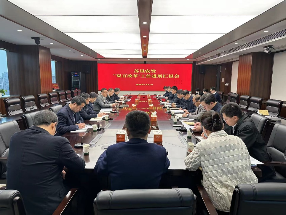 3月14日,PA视讯召开“双百改革”工作进展汇报会,集团总经济师、PA视讯党委书记、董事长朱亚东主持会议并讲话。大华种业、苏垦米业、苏垦农服、苏垦农科院、总部各部门分别汇报“双百改革”任务进展情况。