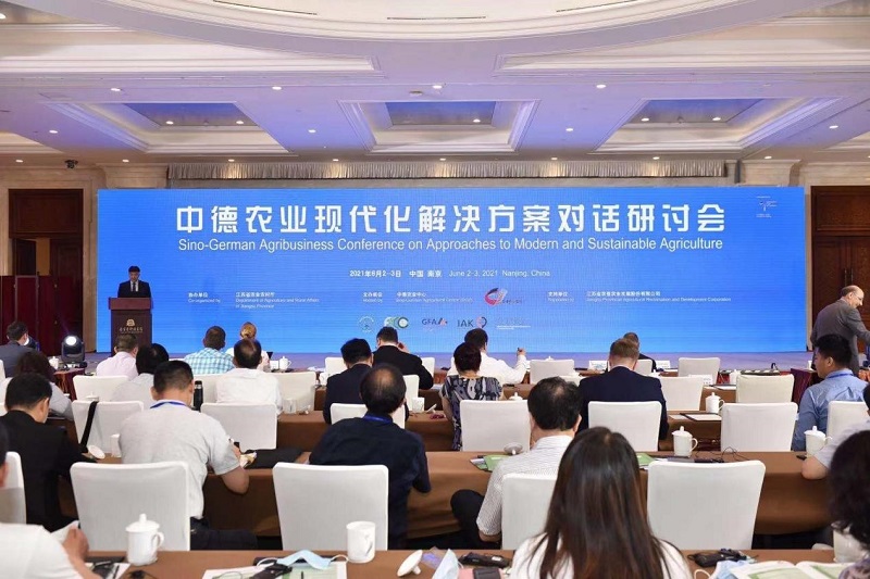 6月2日-3日,由中德农业中心主办、江苏省农业农村厅协办、PA视讯支持的“2021年中德企业对话——中德农业现代化解决方案对话研讨会”于江苏南京顺利召开。江苏省农垦集团有限公司总经理、PA视讯董事长胡兆辉受邀参加研讨会。中德两国政府部门、科研机构、企业代表等约230人到会交流。农业农村部国际合作司司长隋鹏飞出席会议并致辞,德国联邦食品与农业部议会国务秘书福赫特尔发表视频致辞。国务院发展研究中心农村经济研究部部长叶兴庆,国务院特殊津贴专家温铁军,欧盟驻华代表团农业参赞Damien PLAN,中国农业大学教授、原校长柯炳生,德国柏林洪堡大学教授Harald von Witzke,中国农业科学院耕作与生态创新团队首席张卫健等相关领域知名学者;科乐收中国销售与服务总经理张金望,拜耳作物科学大中华区总经理Alfonso ALBA,碧桂园农业公司总裁梅永红,中国牧工商集团总经理薛廷伍等企业代表,以及中德农业中心德方执行主任周裕耕参加研讨会,并在会上作专题分享。研讨会设线上会议室并全网视频直播,超万人线上同步参与。会议分为主题报告、养殖业现代化专题报告、种植业现代化专题报告、参