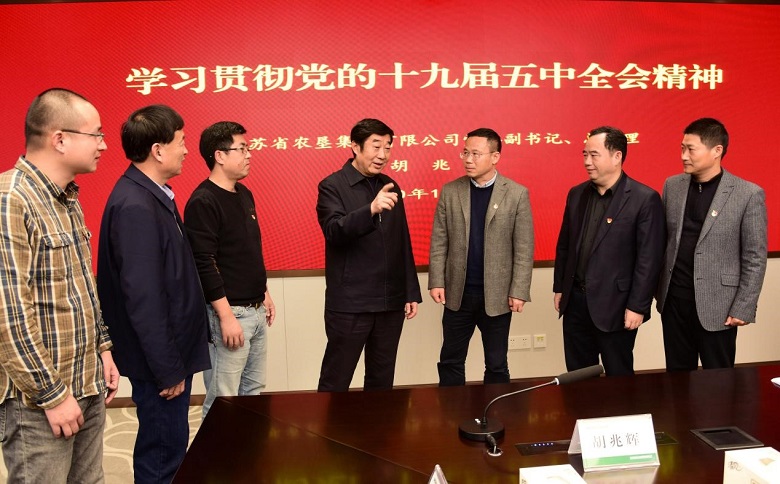 胡兆辉指出,全会高高立起了发展的“里程碑”、科学设定了前行的“方向标”、精心绘制了腾飞的“航线图”,要把学习宣传贯彻五中全会精神和总书记视察江苏重要讲话指示精神作为一项重要政治任务。要组织广大党员干部认真学习领会全会精神和总书记重要讲话指示精神,坚持原原本本学、融会贯通学、创新方式学,切实把握核心要义、吃透精神实质。要把学习贯彻成果转化为立足岗位作贡献的强大动力,按照总书记赋予江苏“争当表率、争做示范、走在前列”的新使命新任务,在稳增长、抓改革、促创新、强党建、防风险等方面扎实工作,确保“十四五”布好局、起好步。