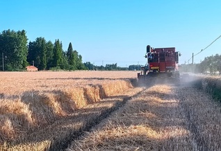 麦浪翻滚,沃野生金。据农情调度显示,截止6月10日,东辛本部、外拓、托管20.7万亩小麦全部收割结束,夏粮单产、总产有望再创新高。在整个小麦收割期间,科技和机械化进步让收割质效大幅提升,大力实施建设的高标准农田、烘干仓储项目等使农业机械化有了大展拳脚的机会,国有及自主外联的具有国际领先水平的约翰迪尔s660、凯斯4088等大型收割机分发挥主力军作用,科技助力东辛开启现代化农业生产“加速度”,新质生产力在东辛广袤的大地上喷涌而出。 6月9日正午时分,在PA视讯东辛分公司东陬生产区,伴随着收割机的轰鸣声,饱满的麦粒顺着出麦口倾泻进入运输车里。“师傅,您的收割机速度有点过快,割台高度偏高,收割后茬口超过10cm,请您放慢速度,注意收割质量。”在机收现场,太阳像个大火球似的悬在天上,远处走来几名佩戴着“红袖章”的督查员,他们头顶草帽,手拿测量工具,在麦田里随机取样抽检每框损失粒数,仔细检查一台台收割机是否操作规范,一辆辆运粮车是否存在跑粮、漏粮等现象......他们不畏似火骄阳,不惧蚊叮虫咬,坚持值班站岗,在田间地头穿梭巡逻,帮助生产区抢收抢种。他们恪尽职守,随时保持“战备”状态,奋